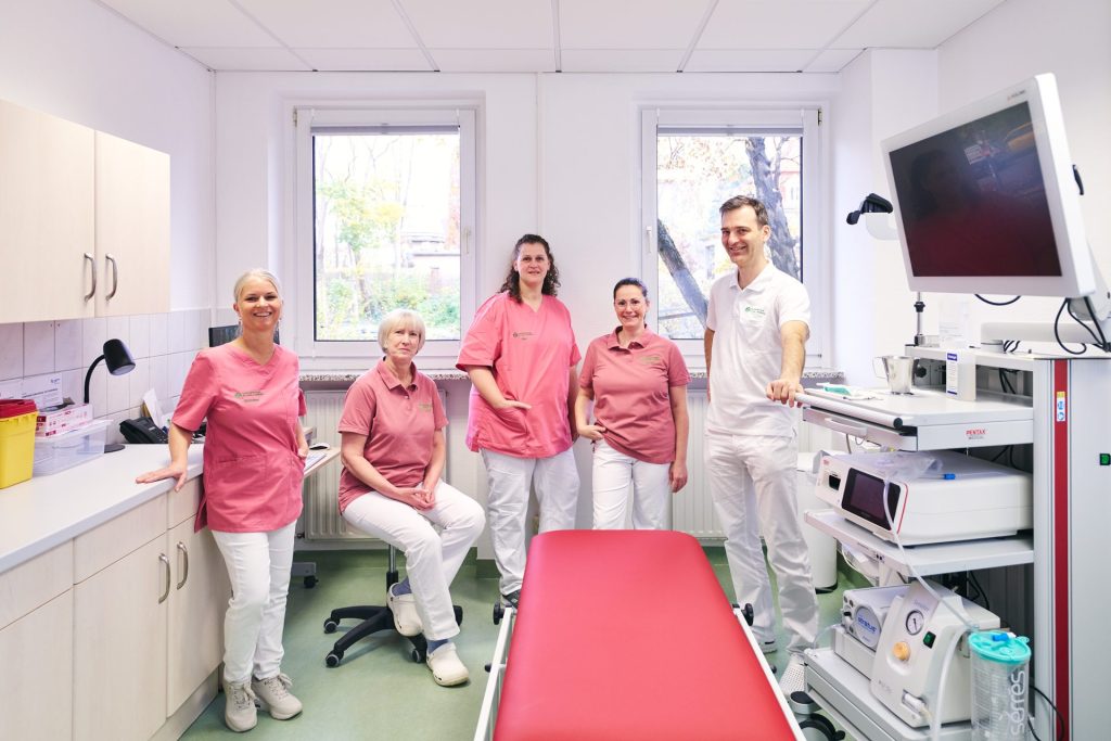 Ein starkes Team für Ihre Gesundheit – in unserer gastroenterologischen Praxis im Herzen von Jena erwartet Sie ein eingespieltes Team aus einem erfahrenen Facharzt und bestens ausgebildeten medizinischen Fachkräften mit langjähriger Berufserfahrung in der ambulanten Medizin.